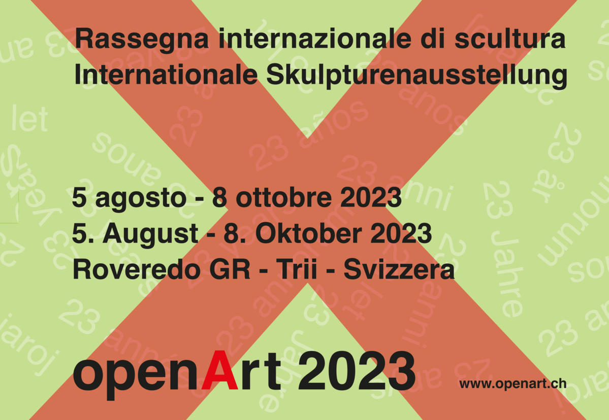 Zum dreiundzwanzigsten Mal eröffnet die Skulpturenausstellung openArt in Roveredo, Trii, Anfang August ihre Tore. Die bereits zur Tradition gewordene Künstlerinitiative bietet erneut Einblick ins zeitgenössische Kunstschaffen von nationalen sowie internationalen Künstlerinnen und Künstlern. Der Skulpturenpark in natürlicher Landschaft lädt zu einmaligen Begegnungen und Gesprächen unter Kunstinteressierten ein.